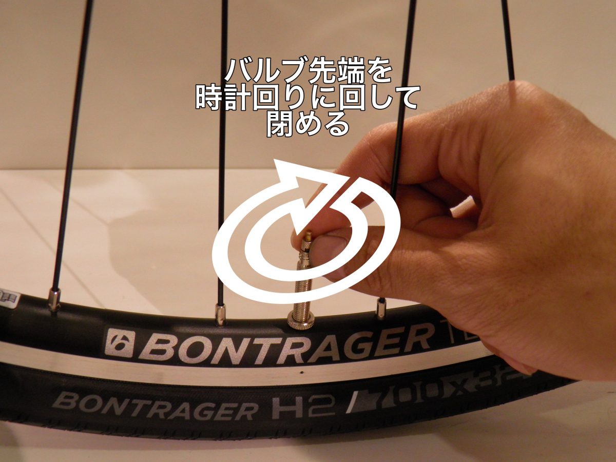 ポンプヘッドを外したら、バルブの先端を時計回りに回してバルブを閉じてください。これで空気入れは終了です。