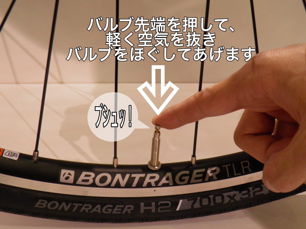 バルブが内部で固着してる場合があるので、バルブ先端を押して少し空気を抜き、バルブをほぐしておくと空気が入れやすくなります。